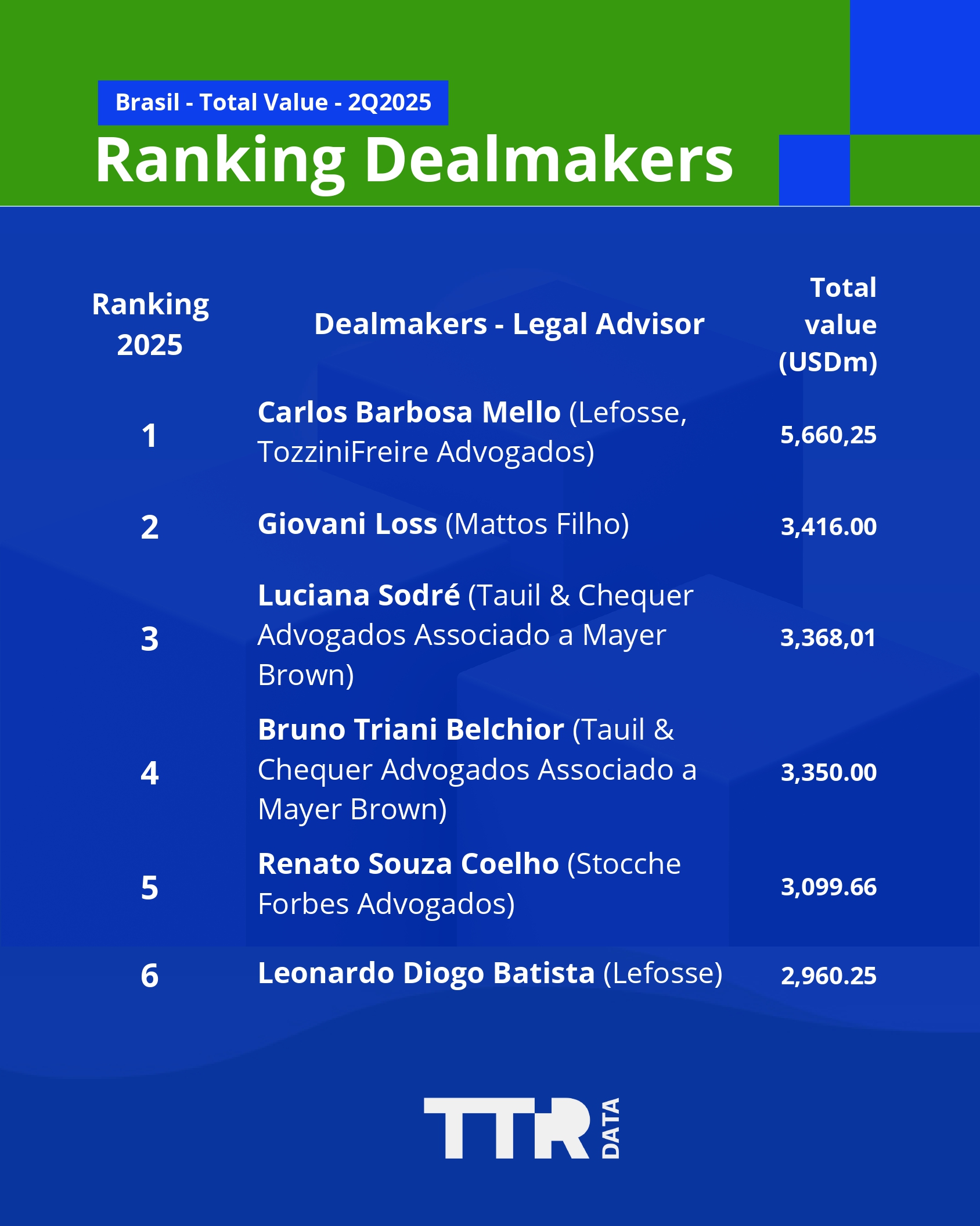 - Carlos Mello (Lefosse, TozziniFreire Advogados): USD 5.660 milhões